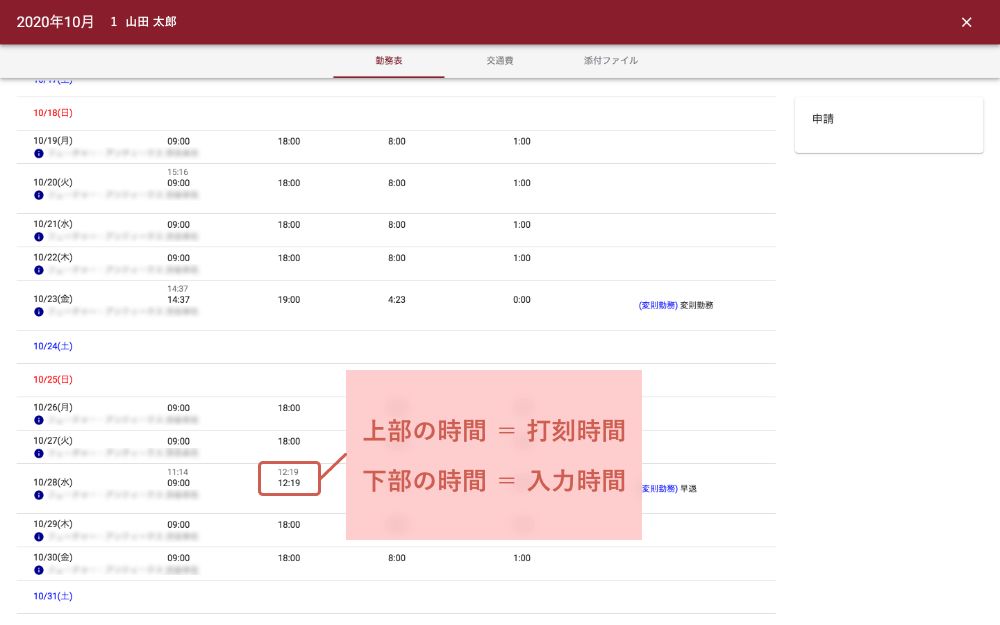 打刻勤務表の見方