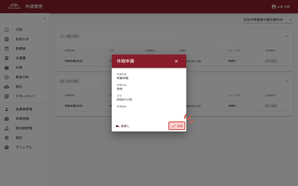 休暇申請の承認