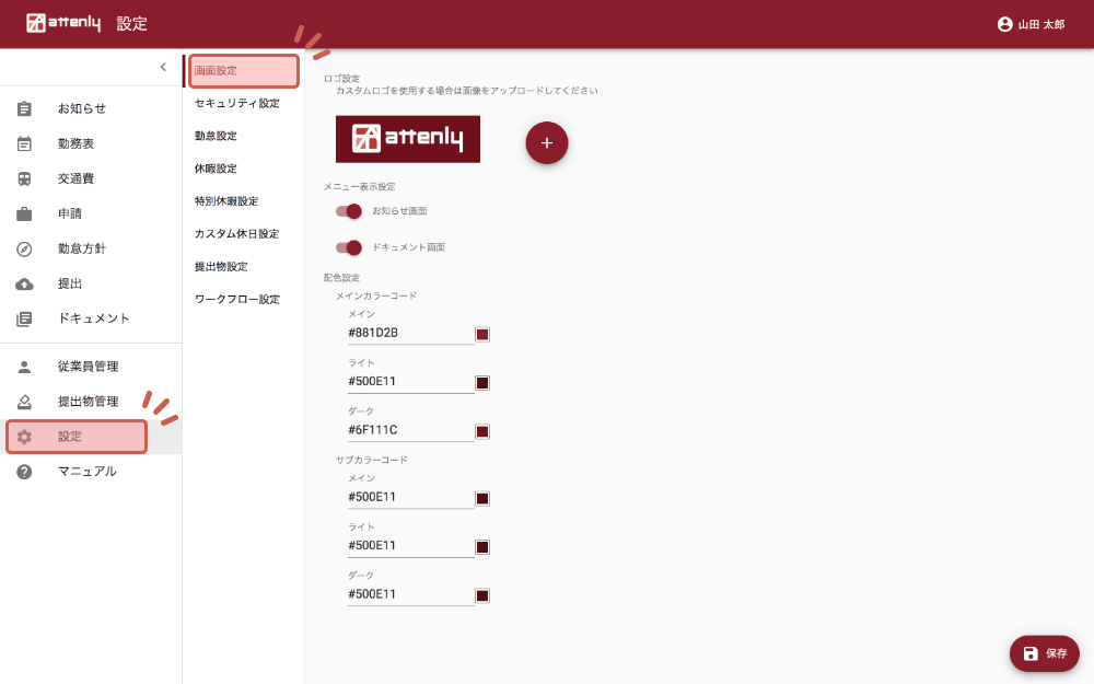 メインカラーの配色設定