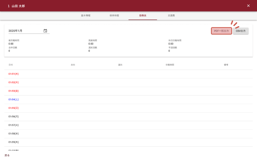 PDFで一括出力したい場合は右上の「PDF一括出力」をクリックします。