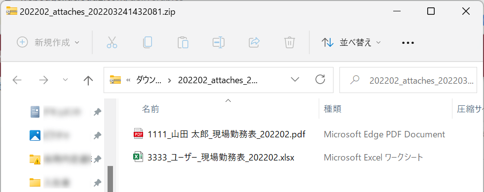 ダウンロード時は、社員番号_氏名_提出物設定で定めた名称_本人がつけたファイル名でダウンロードされますので、ファイル名の管理も簡単です。