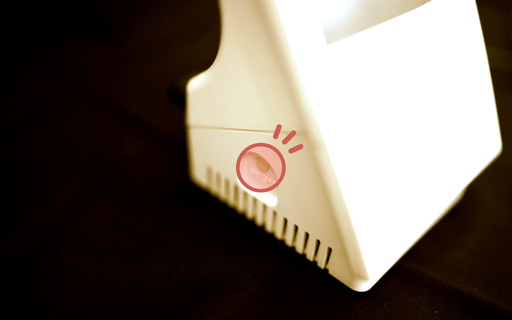 電源コードを本体背面に差し込み、側面のボタンを長押しします。(2~3秒ほど)すると本体が起動します。