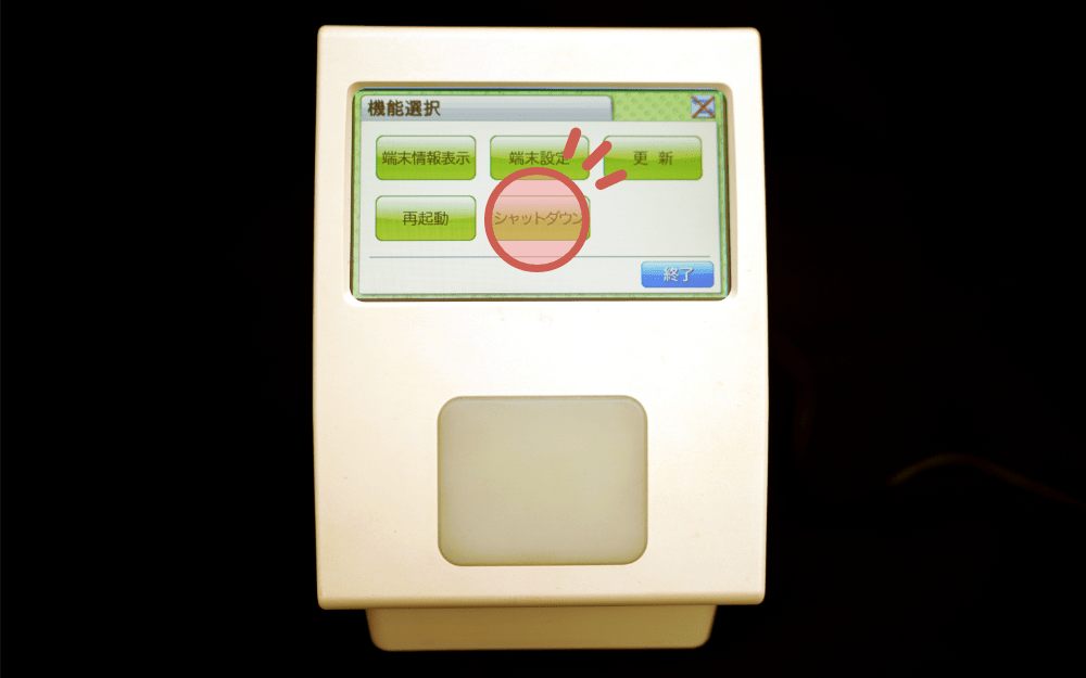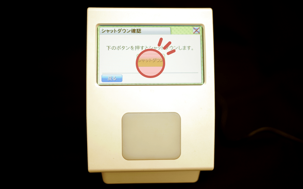 もう一度「シャットダウン」をタッチすると、本体がシャットダウンします。