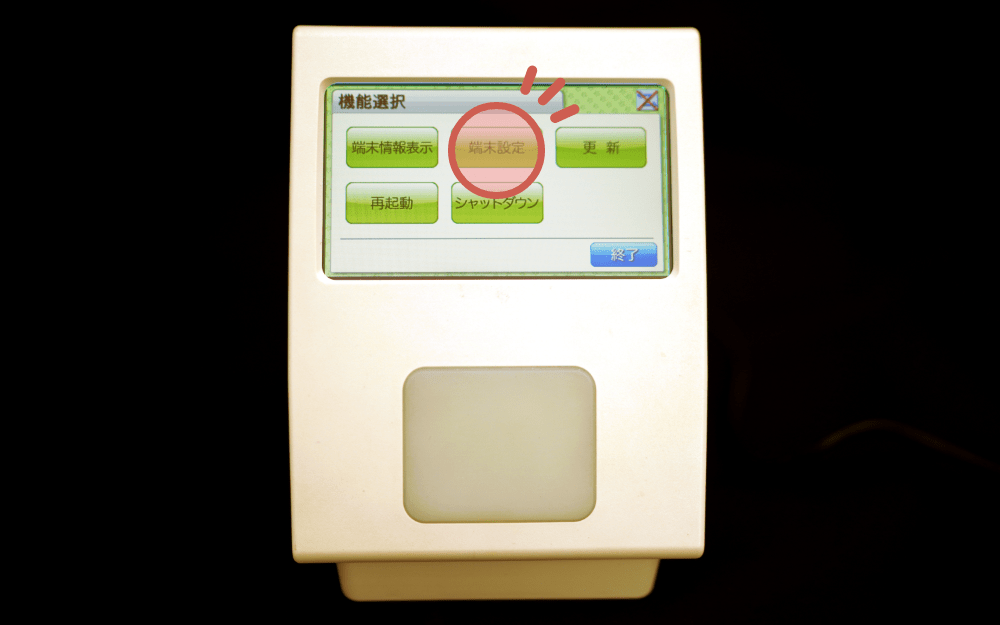 機能選択画面が表示されるので「端末設定」をタッチします。