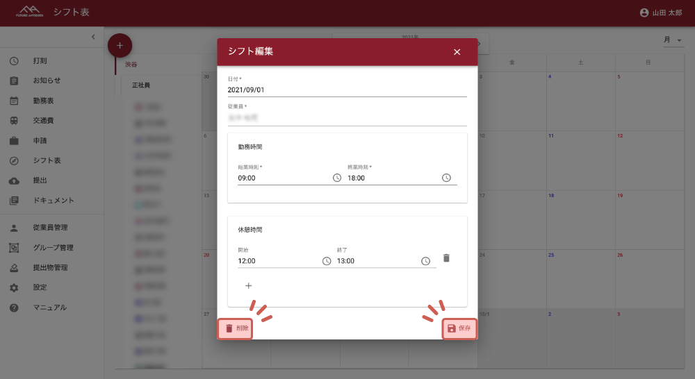 シフトの修正・削除