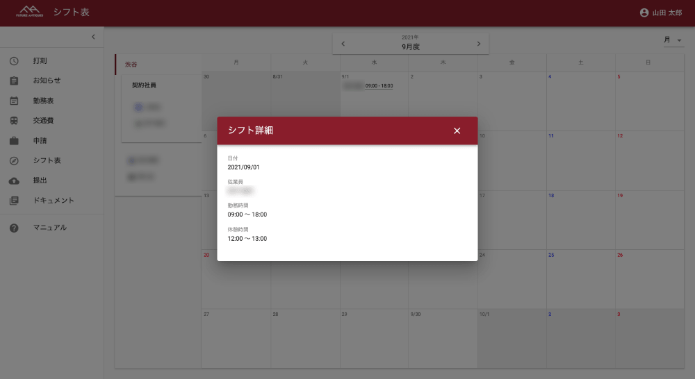 シフト表の詳細情報を確認するには、対象のシフトをクリックします。