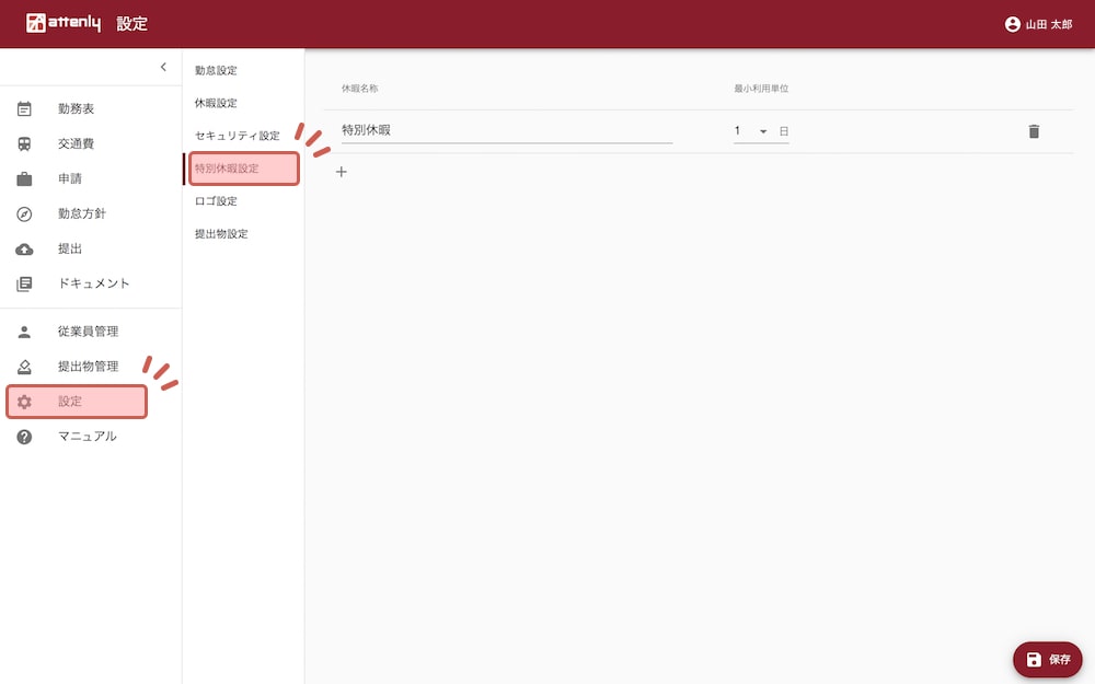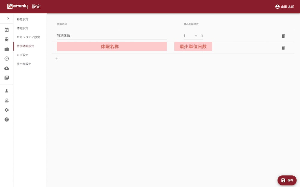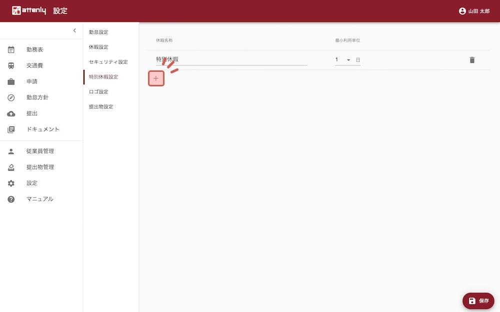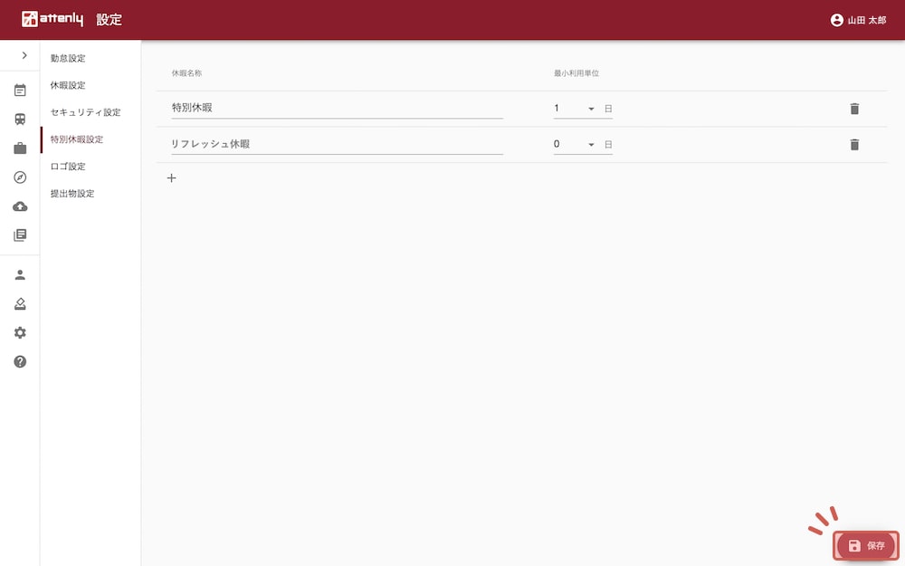 「休暇名称」「最小利用単位」を設定します。