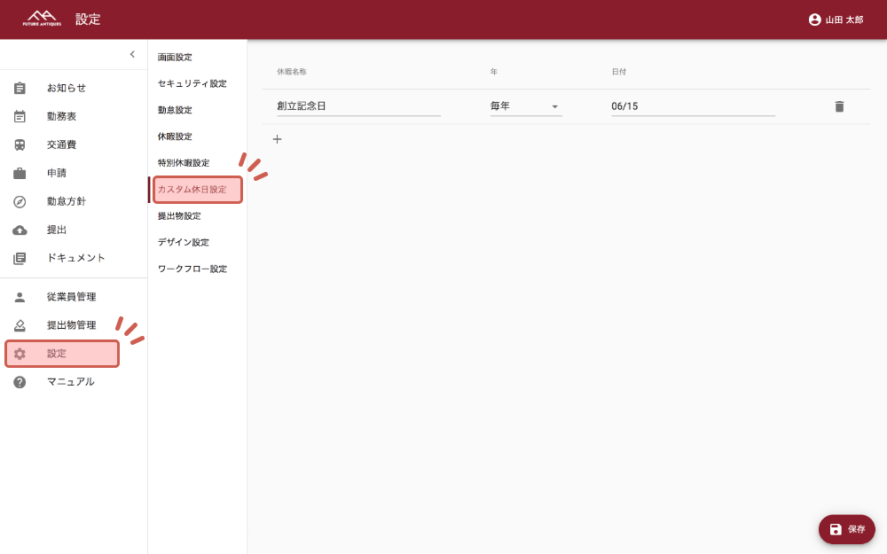 カスタム休日設定ページにアクセス